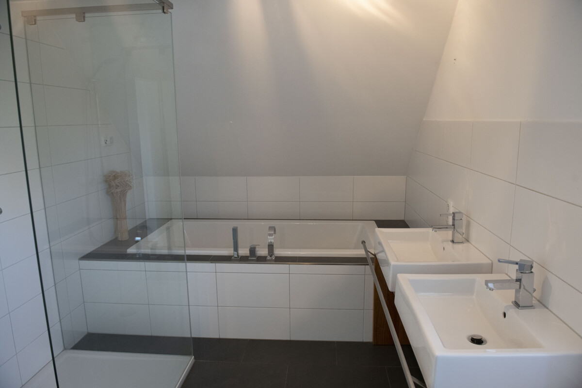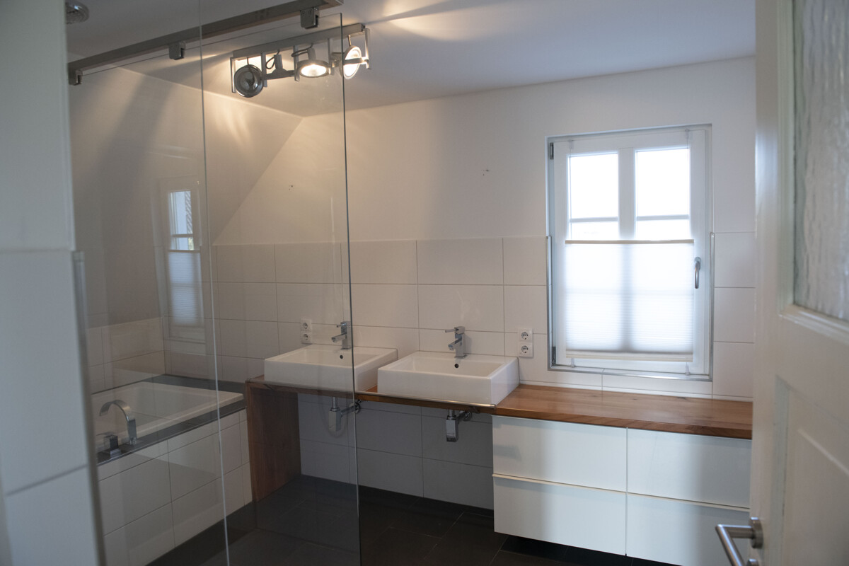 Im Erdgeschoss befinden sich 1 Küche, 1 sehr großes Wohn - Esszimmer mit Kamin , 1 Badezimmer mit Dusche, sowie 2 weitere Zimmer.Über eine stillvolle Holztreppe gelangt man in das Obergeschoss, dieses ist mit 1 Schlafzimmer und 3 weiteren Zimmern, 1 Bad mit Dusche, sowie 1 weiteres Bad mit großer Badewanne, bodentiefer Dusche und zwei Waschtischen ausgestattet.
