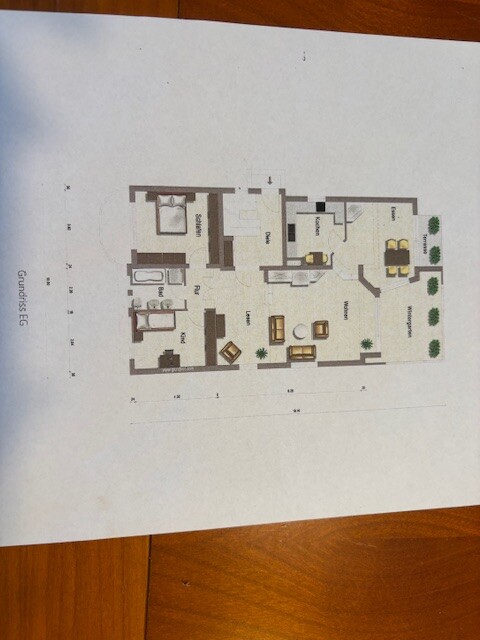 Im Erdgeschoss befindet sich 1 Diele, 1 großer, heller Wohn- Essbereich mit Kachelofen , 1 Küche, 1 Wintergarten, 2 Schlafzimmer, sowie 1 Badezimmer mit Dusche und Wanne.