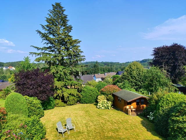 Das Obergeschoss ist mit 2 Schlafzimmern ( beide mit Balkon), 1großzügigen Badezimmer mit ebenerdiger Dusche und Badewanne mit Whirlpoolfunktion , 1 Abstellraum, 1 Ankleidezimmer und 1 Gallerie ausgestattet. Von beiden Balkonen hat man einen herrlichen Blick über das bergische Land.