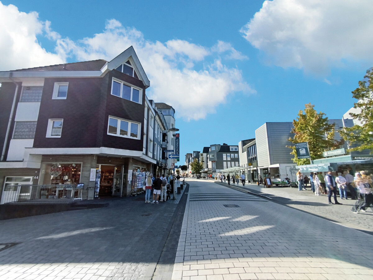 Eine Innenstadt mit mehreren Geschäften, Restaurants, Cafes, Rathaus, Banken und vieles mehr.