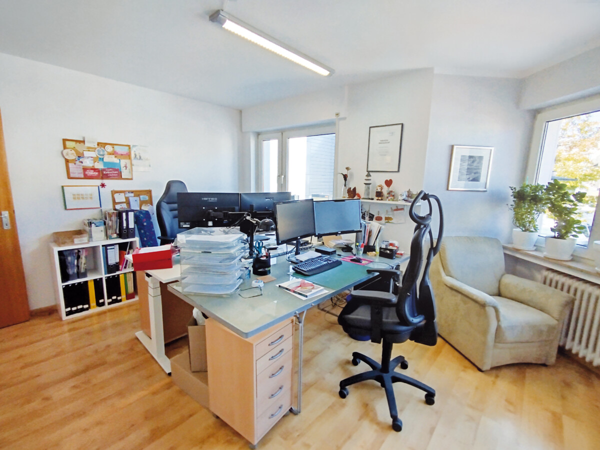 Im ersten Obergeschoss befindet sich eine 60 m² große Wohneinheit mit Schlafzimmer, Wohnzimmer, Badezimmer, Küche, Flur und Abstellraum. Diese Einheit ist vermietet.