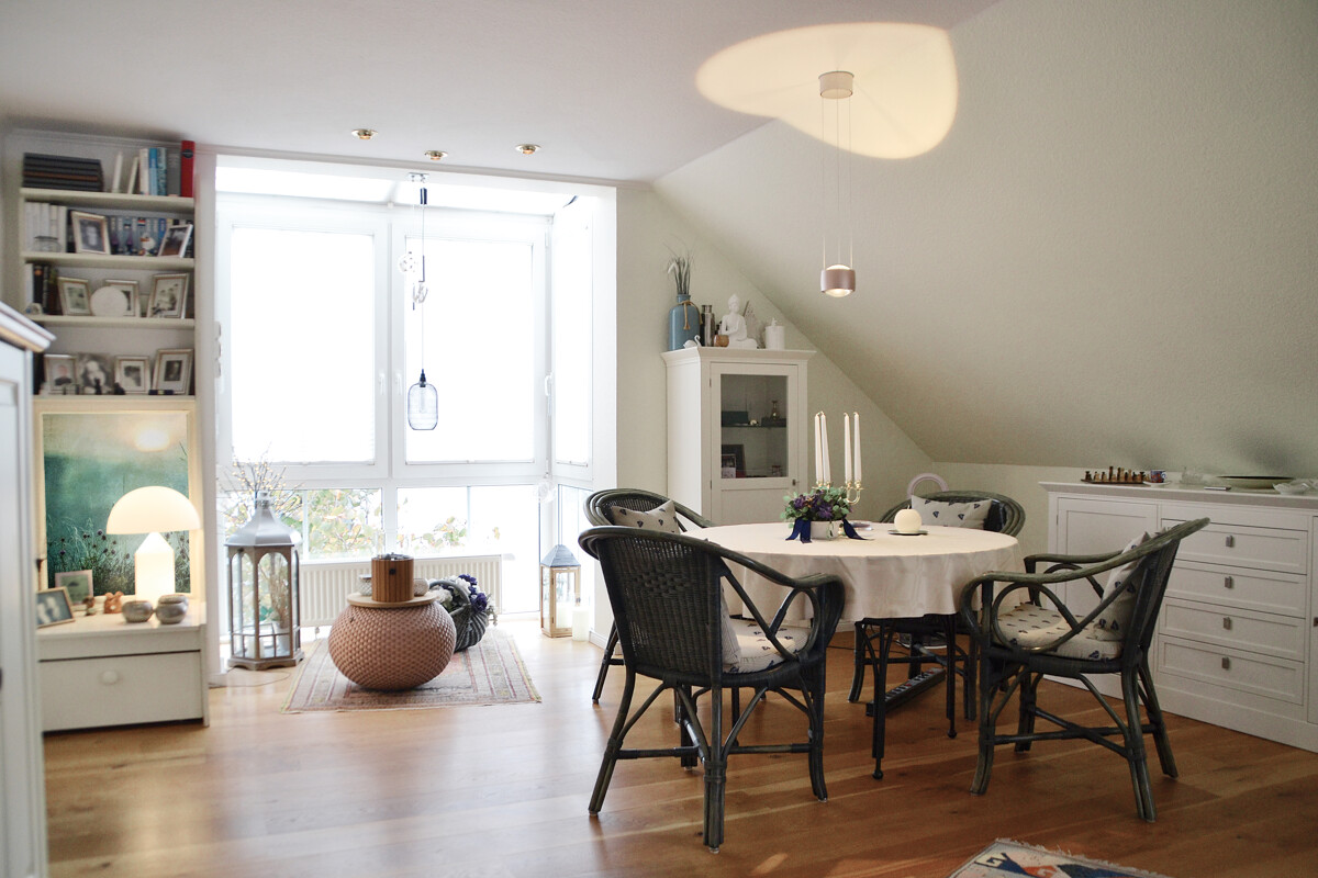 Die exklusive Eigentumswohnung bietet viel Komfort. Sie ist über zwei Etagen 1995 errichtet worden und bis jetzt wohnen die Eigentümer in dem Objekt.